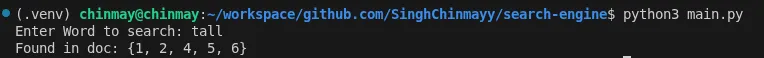 Once the inverted index was ready, querying became simple. This is the payoff moment where you can actually search for something and get results back.